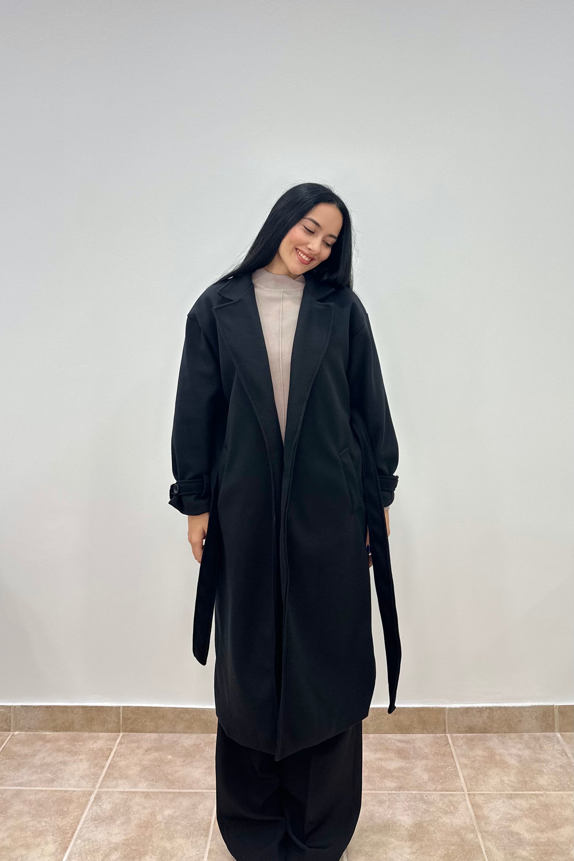 Αναβαθμίστε τη χειμερινή σας γκαρνταρόμπα με αυτό το διαχρονικό μαύρο παλτό, σχεδιασμένο για να προσφέρει στυλ και άνεση σε κάθε σωματότυπο. Η one-size γραμμή του εξασφαλίζει μια μοντέρνα, άνετη εφαρμογή, ενώ η αφαιρούμενη ζώνη στη μέση σας επιτρέπει να τονίσετε τη σιλουέτα σας ή να το φορέσετε ανοιχτό για ένα πιο casual look.