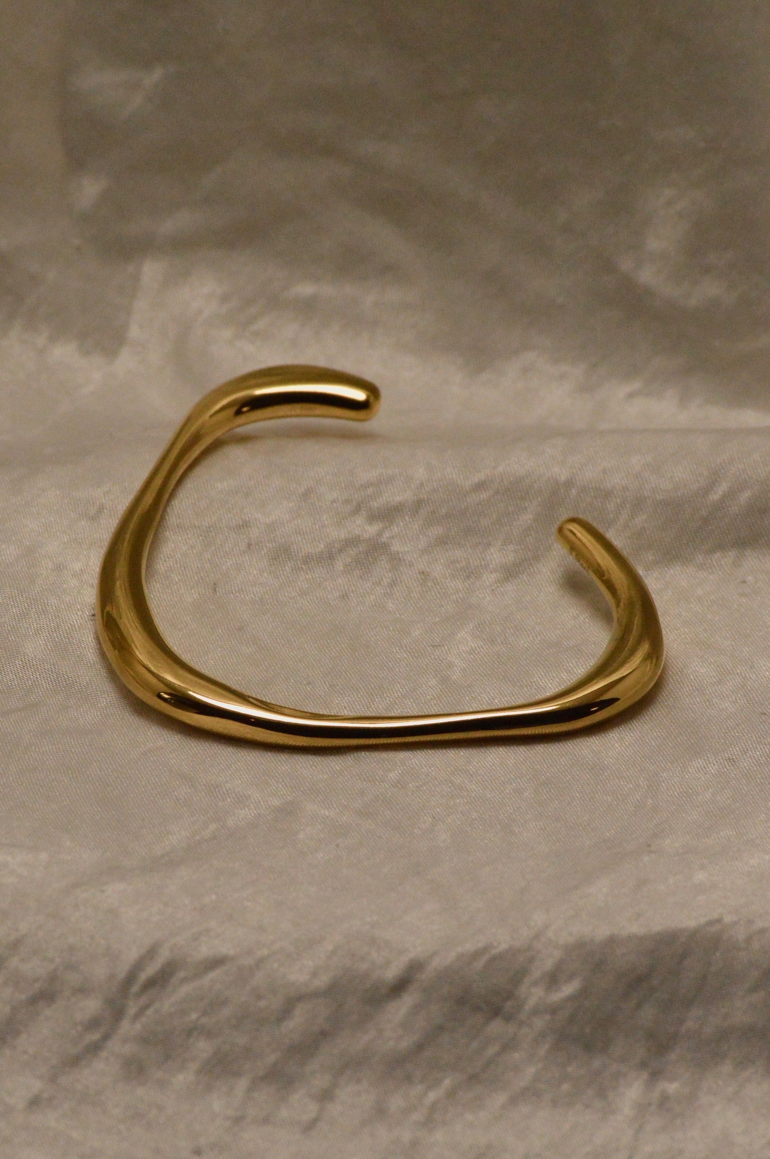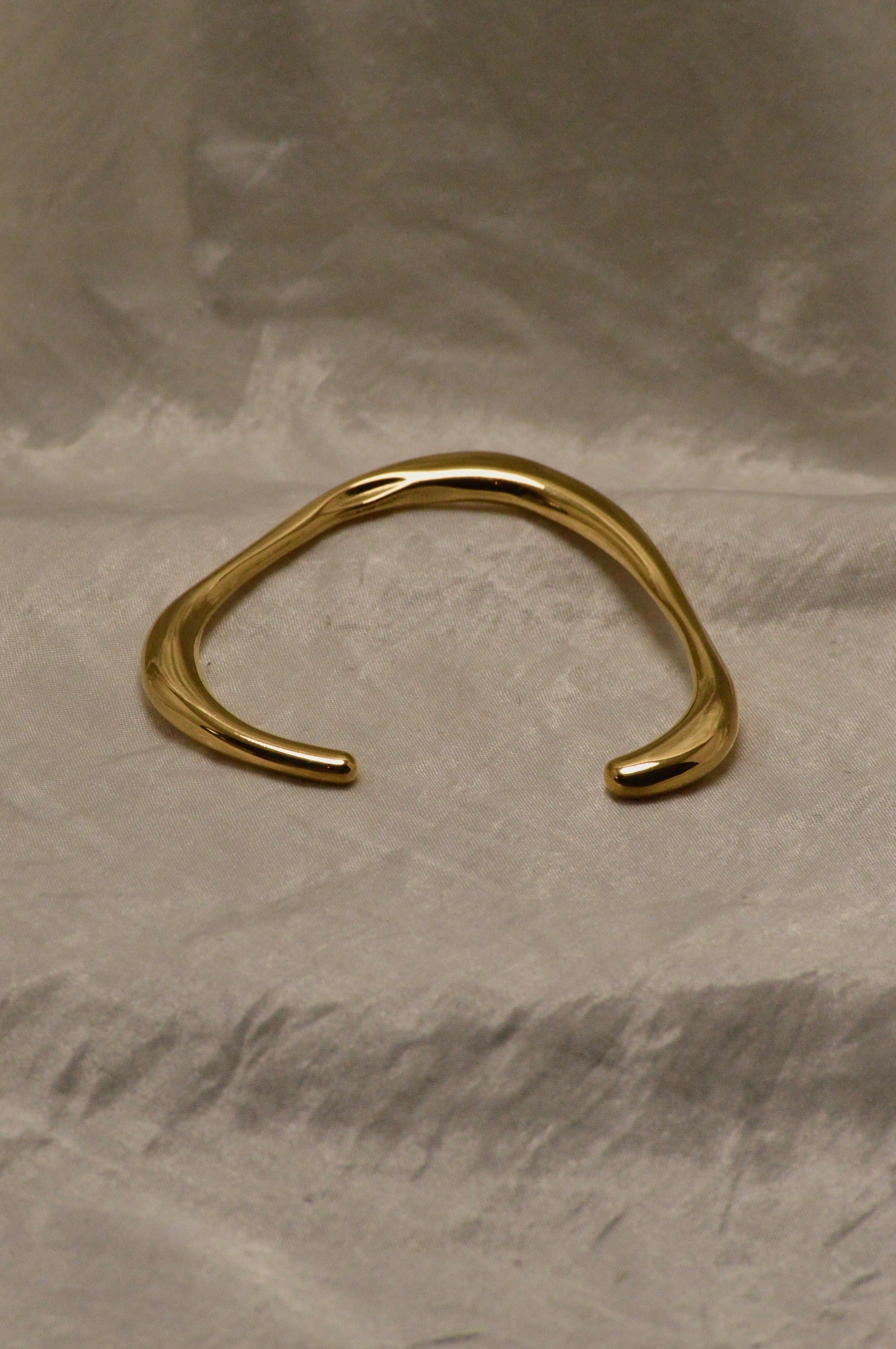 Minimal cuff βραχιόλι με κυματιστό, οργανικό σχέδιο από υποαλλεργικό ανοξείδωτο ατσάλι. Ελαφρύ και ανοικτό για άνετη εφαρμογή, με γυαλιστερή επιφάνεια που δίνει διακριτική λάμψη. Ιδανικό για καθημερινό στυλ και layering με άλλα βραχιόλια.